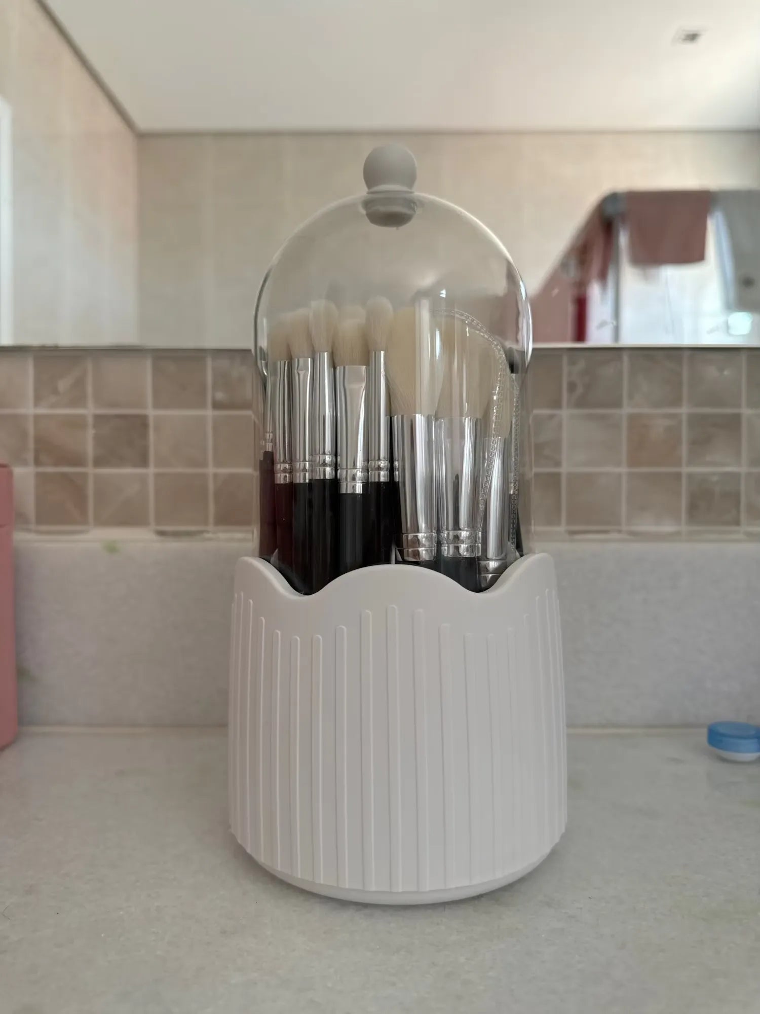 "OMG this makeup holder is a lifesaver! Fits all my brushes and lipsticks neatly. Love the 360° rotation, makes getting ready so much easier. Plus, it's super cute on my vanity! Who knew organizing could be this chic? Highly recommend for keeping your counter clutter-free.💄💅😊"